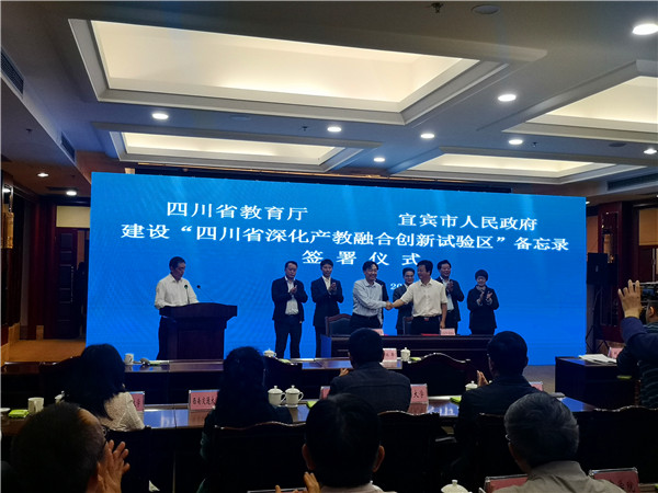 脱贫攻坚现场会结束后,桑作银代表学院参加了省教育厅和宜宾市人民政府建设“四川省深化产教融合创新试验区”备忘录签署仪式。