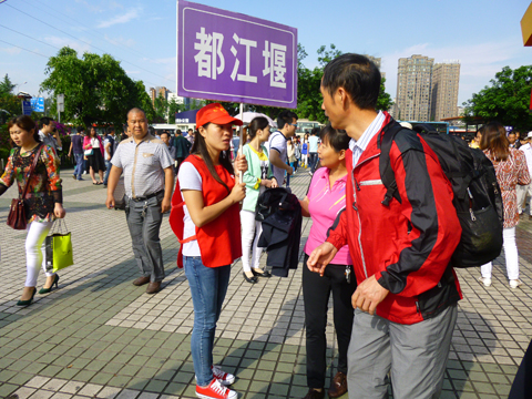 工商管理系党员同志与青年志愿者协会干部干事及会员于早晨七点乘车前往茶店子车站,并在车站负责人的安排下开展志愿服务活动。由于五一节客运量比较大,客运站的人流量比较多,为防止意外事故的发生,志愿者们主要是进行秩序维持和路人引导,以提供给乘客方便,减轻客运站工作人员的负担。面对复杂的人群,志愿者们总是保持者耐心、细心、热情的态度为乘客们服务。