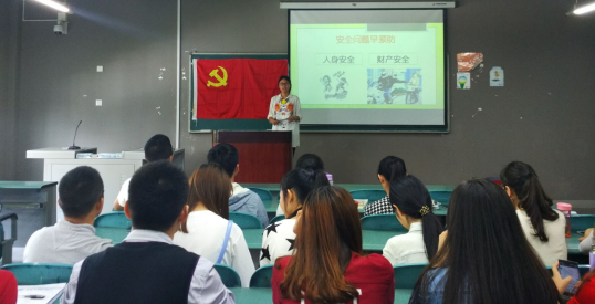 酒店系学生党支部书记张蓉老师最后总结发言:“虽然安全这个话题老生常谈,但是它的重要性不能忽视,希望所有党员同志重视。同时希望党员同志们能发挥先进模范作用,将安全意识带到周围同学身边,增强其余同学安全意识,共建和谐校园。”