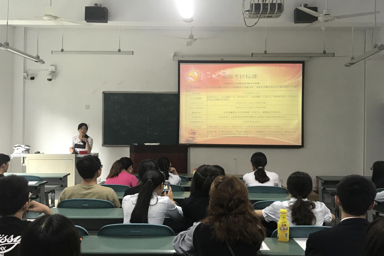2017年9月26日中午,酒店管理系学生党支部在2110教室召开了党员发展说明会,本次会议由学生党支部组织委员郑静老师主持,学生支部全体入党积极分子参于此次会议。