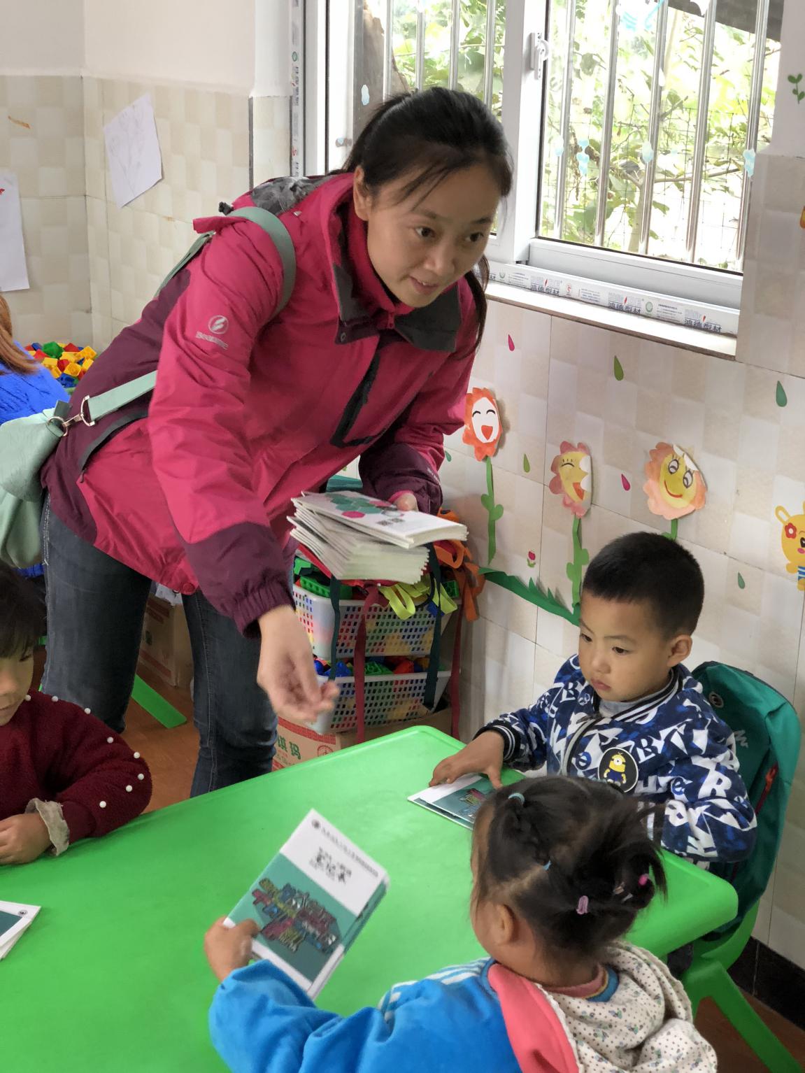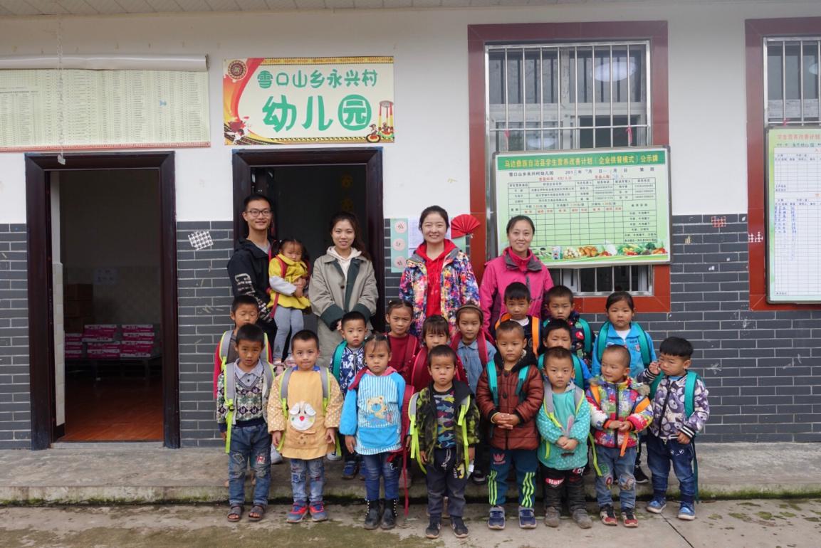 教师们为永兴村幼儿园的小朋友送去学习用品,并与师生进行了亲切交流