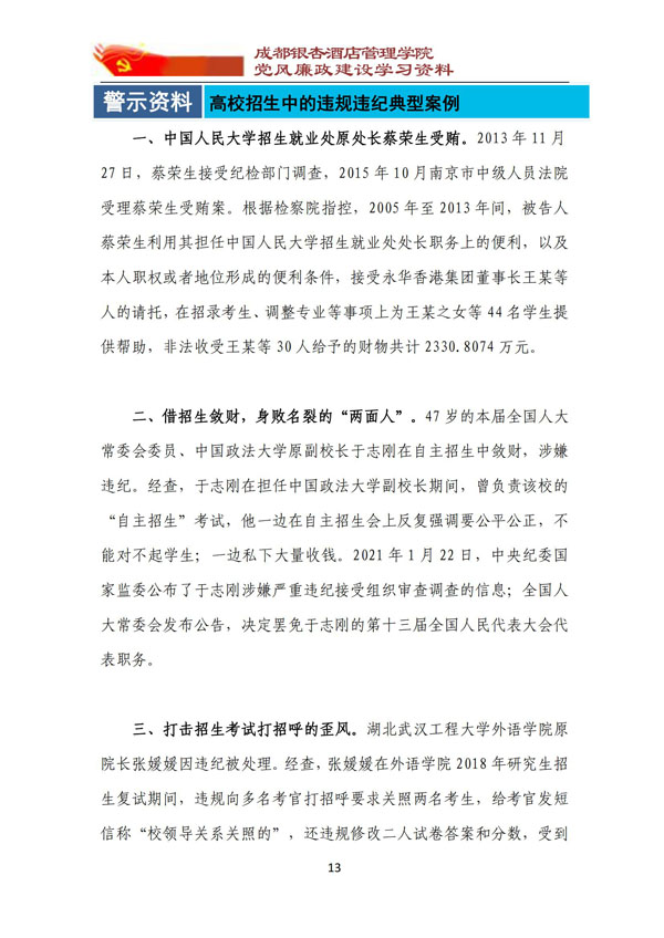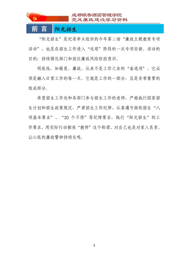 党风廉政建设学习资料 “阳光招生”专题学习材料