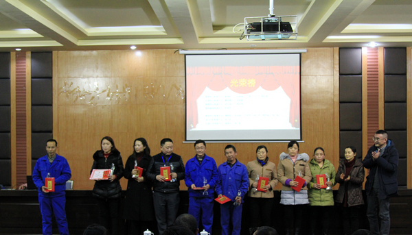 最后,会议对后勤集团2016年18名先进员工进行了现场表彰,由学院董事会代表余媛,后勤集团总经理赵斌为先进员工颁发证书,本次大会在热烈的掌声中画上了圆满的句号。