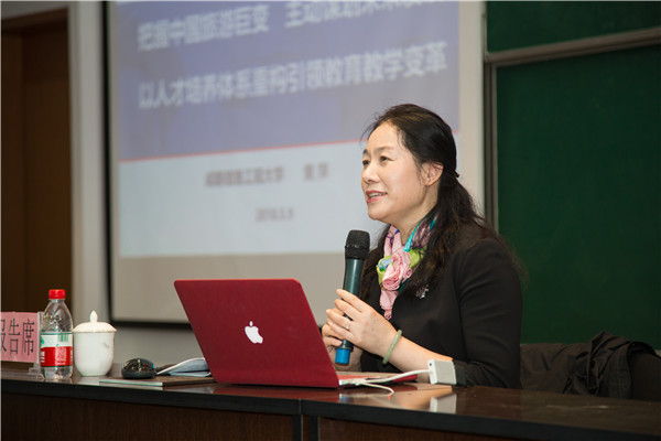 黄萍教授从全新审视中国旅游业的六大巨变、重构新时代人才培养体系以及重构产学合作协同育人机制三个方面做了全面深入的报告。她用丰富的实例以及严谨的分析论证说明了改革开放40年中国旅游业在产业环境、产业地位、产业结构、产业模式、产业机制以及产业功能六大方面发生的巨大变化,并针对我院本次举办的人才培养模式改革研讨会主题就人才培养顶层设计,学科专业体系重构的依据、重构思路、重构路径给出了具体建议。报告会最后,黄萍教授分享了成都信息工程大学管理学院在“需求导向,特色引领,复合型旅游信息化人才‘π型’实践培养模式的探索与实践”经验,对我院重构人才培养体系给予了启示。
