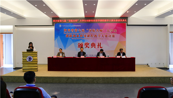 10月18日,四川省第七届“导航名师”大学生创新创业指导课程教学大赛颁奖典礼在学院1号教学楼1119阶梯教室举行。四川省教育厅二级巡视员、体卫艺处处长李孝武,四川省教育厅大学生就业指导与信息管理中心主任马银军,四川省就业局创业服务指导中心副主任侯琳娜,学院副院长易贤文出席颁奖仪式,并为获奖选手颁奖。典礼由马银军主持。