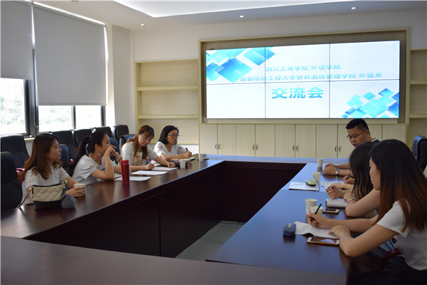 2018年5月28日,四川工商学院外语学院黄毅院长一行来我校进行商务英语专业建设交流,外语系系主任助理田娜、办公室主任张先梅、商务英语教研室主任范雯、英语教研室主任谢璐、专职教师张简汐出席此次研讨会。