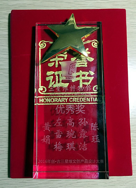 学院2015级文化产业管理专业的“一日生活,一日文化”小团队以主题鲜明、创意独特、兼具实用与创新的系列文创产品,在数百件作品中脱颖而出从,喜获创·古·三星堆2016三星堆文创产品设计大赛的优秀奖。
