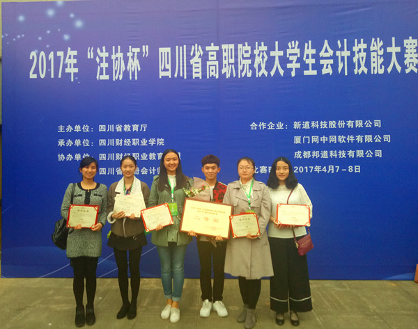 4月8日,由四川省教育厅主办,四川财经职业学院承办的2017年“注协杯”四川省高职院校大学生会计技能大赛在四川财经职业学院落下帷幕。此次大赛共吸引了来自全省48支代表队参加。财务管理系2014级的邓钦芸、2015级的洪碧馨、邹柳阳、冯林林4名同学在杨奕、张晓萌老师的指导下代表学院参加了此次大赛,并在比赛中获得了二等奖。