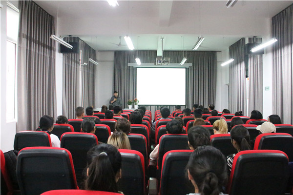 艺术系专业老师邓杨帆运用国外知名电影的海报设计、品牌产品效果图等生动实例,向同学们讲解了设计的综合性概念以及灵感来源,建议同学们把图书馆的文献资源作为课余的第一手学习资料,拓宽学习领域。学生代表钟红宣读了倡议书,提倡大家多读书、读好书。图书馆流通部张琳老师针对馆内的艺术类书籍资料做了介绍。