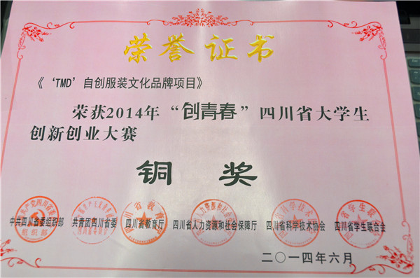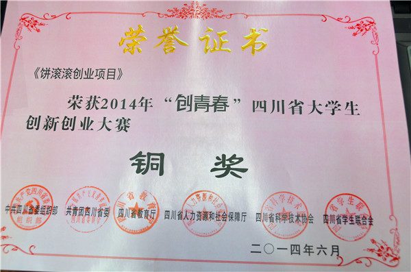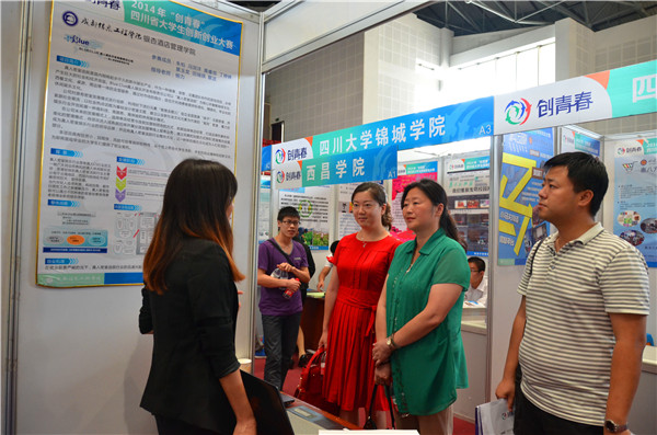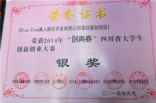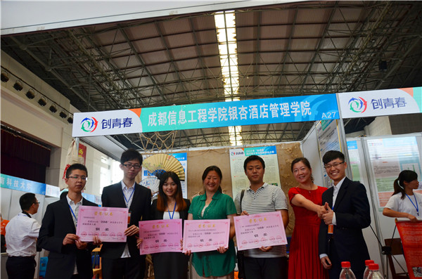 6月14-15日,由省委组织部、团省委、省教育厅、省人社厅、省科协、省学联共同举办的2014年“创青春”四川省大学生创新创业大赛作品展示会及闭幕式在成都信息工程学院航空港校区举行。由我院团委选送的四件创业作品创造历史佳绩,获得了一银三铜的好成绩。其中由财务管理系杨力老师指导的项目《Blue Clue真人娱乐开发有限公司项目策划项目》获得比赛银奖,朱柏、冯泯洋、黄睿湉、丁婷婷作为学生代表参加了本次活动。
