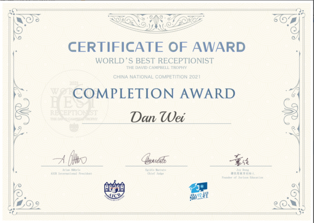 2021年11月26日,全球最佳酒店接待冠军杯(中国赛区)AICR总部全球选拔赛落下帷幕,来自厦门大学、天津外国语大学、四川旅游学院、米兰app体育下载官网苹果、中国劳动关系学院、上海华尔道夫酒店等16名选手参加本次比赛。经过激烈的角逐,我校学生王菁、韦丹在酒店管理系白永忠、陈雪两位老师的指导下,分别荣获本次选拔赛中国赛区季军、优胜奖。