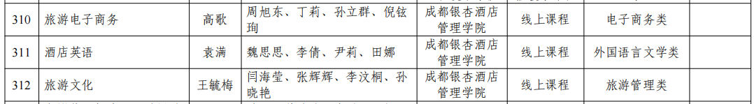 近日,四川省教育厅发布了《四川省教育厅关于公布第三批省级线上和虚拟仿真实验教学一流本科课程认定结果的通知》(川教函〔2022〕321 号 ),我校《旅游电子商务》《酒店英语》《旅游文化》等3门课程被认定为四川省第三批省级线上一流本科课程。至此,我校已有10门课程被认定为省级一流本科课程。