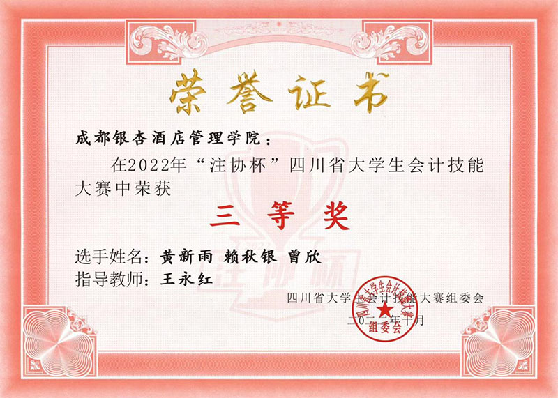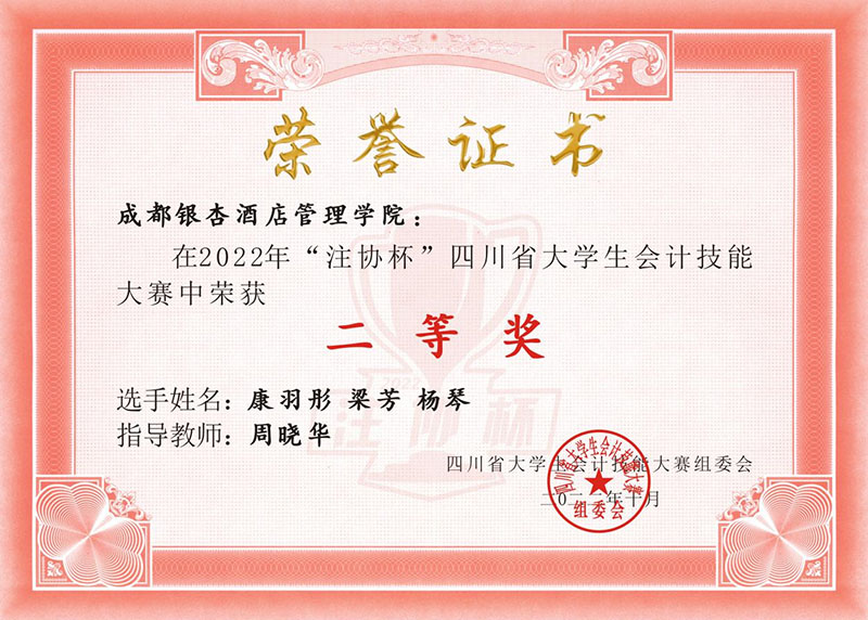 10月30日,由四川省教育厅举办、四川农业大学承办的2022年第六届“注协杯”四川省大学生会计技能大赛在献上落下帷幕。我校财务管理系有五支学生队伍参赛,最终斩获两个本科组二等奖、三个本科组三等奖的好成绩。