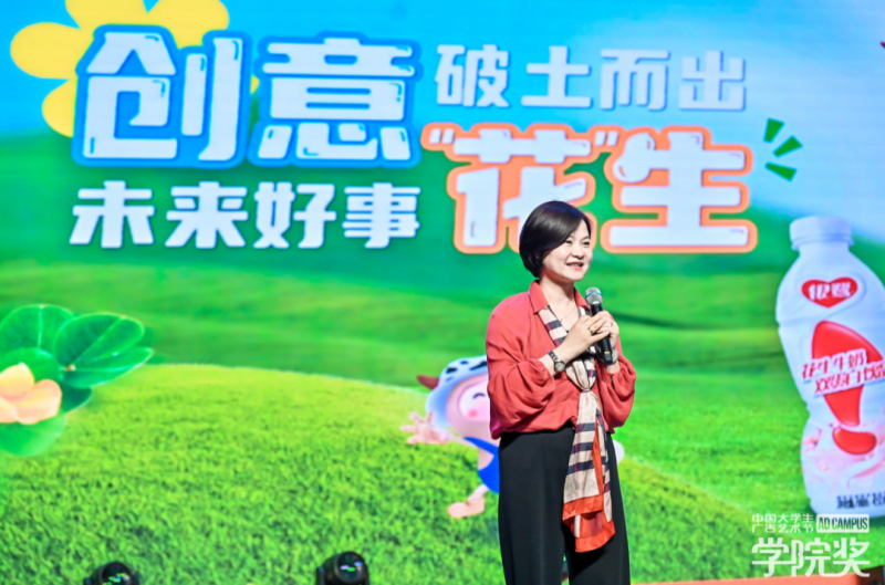 袁健女士上台为米兰app体育下载官网苹果设计艺术学院颁发“年度广告教育推动奖”,龚燕代表学校上台领奖,并向组委会表示感谢。