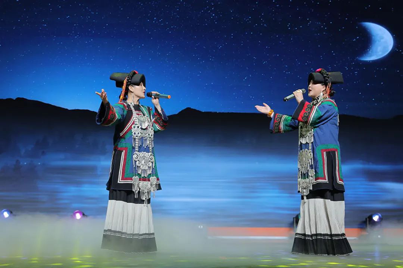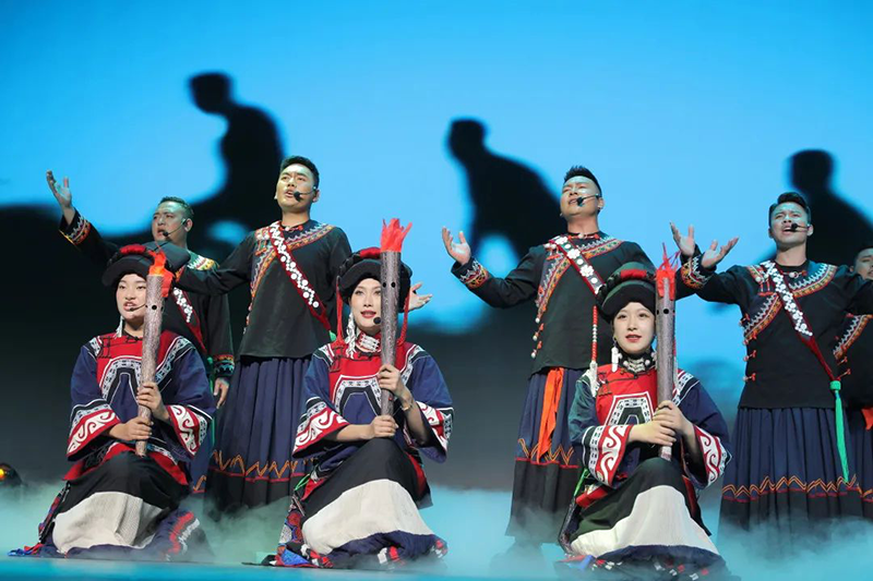 演出在歌曲《新征程 卡莎莎》中画下圆满句号。演唱者们用激情高昂、坚定自信的歌声,唱出了彝族人民愿与无数中华儿女一起奔向伟大中国新征程的誓愿。