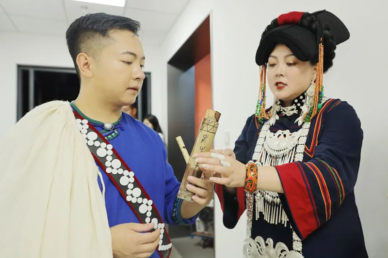 按照省教育厅2023年帮扶工作要点,在体育卫生与艺术教育处、高等教育处等有关处室的大力支持下,雷波县文化馆打造了一台以“构筑中华民族共同体、弘扬中华民族传统文化、讴歌新时代、奋进新征程”为主题的民族音乐节目。5月31日,在我校大学生校园文化艺术节系列活动如火如荼开展的氛围中,学校特别邀请该演出团队到校,以《新征程 卡莎莎》为主题,为银杏师生带来一场集听觉视觉为一体的民族音乐盛宴。这也是我校首次邀请民族音乐进校。