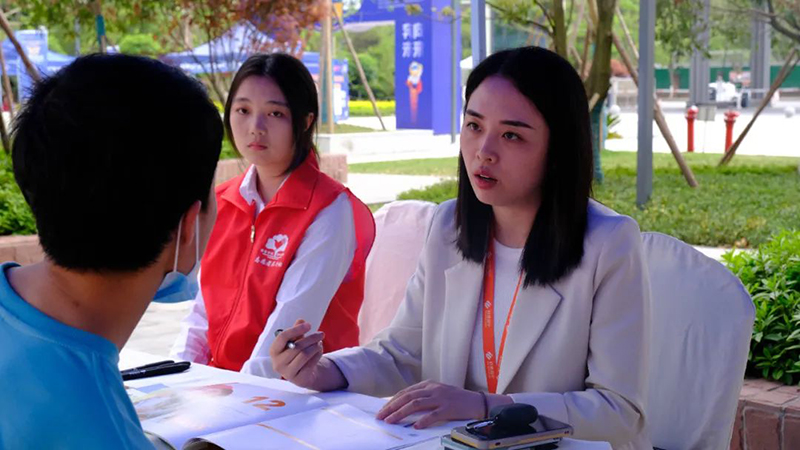 在「2023春季国际教育展」现场,来自法国、瑞士、英国、泰国等来自欧洲、大洋洲、美洲、亚洲的热门留学地数十所海外大学齐聚银杏,开展专家讲座、现场咨询,为银杏er科普、答疑。