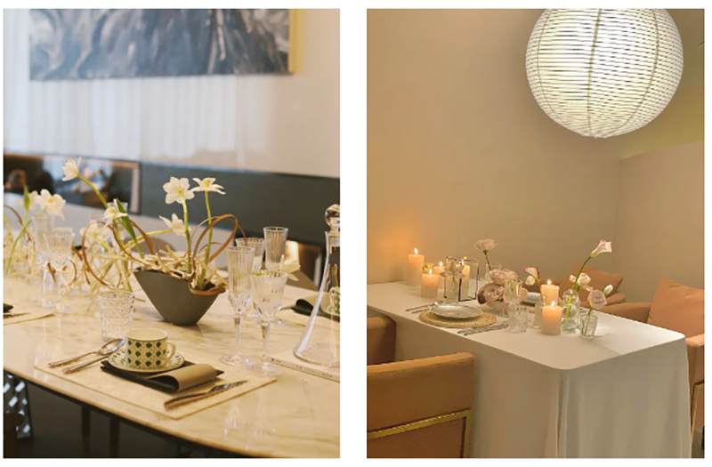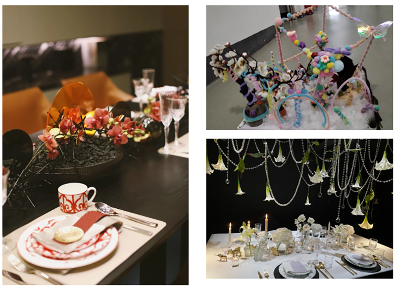 在结课展示会上,各小组根据以IF美学艺术餐厅不同包房主题、聚会人数出发,依据餐厅现有的就餐环境、灯光设计、氛围等,围绕传统文化、特色人群、生活美学等方向进行探索,最终呈现出“予蝶”、“山茶之约”、“银杏有约”、“蓝色纪念”、“冰山一角”、“跃海”六个风格迥异的设计方案。