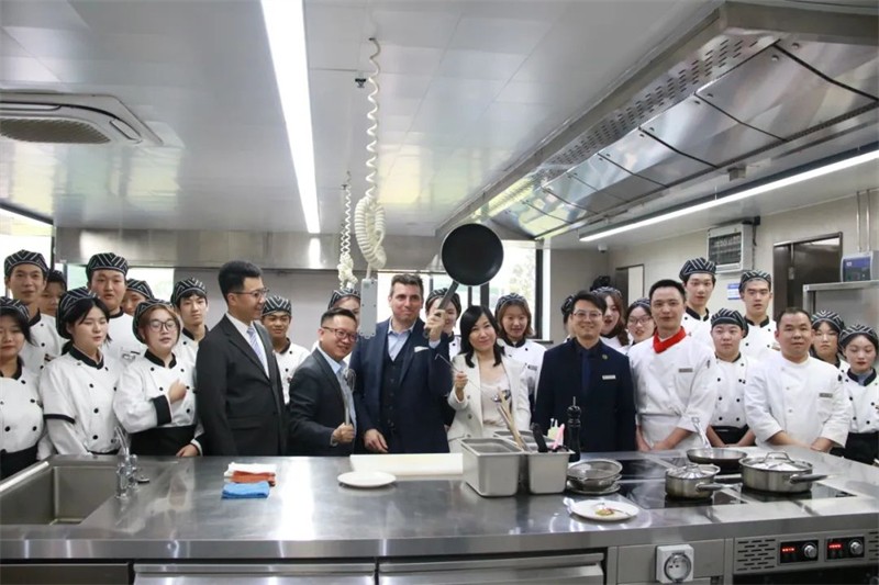 法国瓦岱勒集团一行及意大利阿尔玛高级烹饪管理学院一行先后参观我校银杏·标准酒店、银杏南珍阁及我校宜宾校区烘焙、调酒、咖啡、茶艺等实训室,了解我校产教融合特色人才培养模式。我校详细介绍了在积极响应国家“一带一路”和四川省“突出南向”的全域开放战略的国际化发展思路下,围绕包括酒店及旅游产业在内的现代服务业开展的教学实践体系、专业/学科融合理念和可持续性职业发展规划等办学思路。