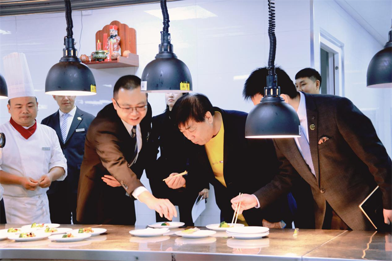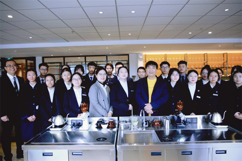 当侯玉瑞参观我校宜宾校区烹饪、调酒、咖啡、茶艺等实训室时,教学实践课程正如火如荼进行。中餐实训课上,银杏学子身着制服,在教师指导下,认真制作宫保鸡丁等川菜。侯玉瑞品尝后表示,菜品色香味地道,并肯定学子对火候的掌控和食材的处理非常到位。调酒课上,银杏学子发挥想象,特调鸡尾酒;茶艺课上,一杯杯茉莉花茶沁人心脾;西餐实训课上,侯玉瑞与学子交流料汁烹饪细节……