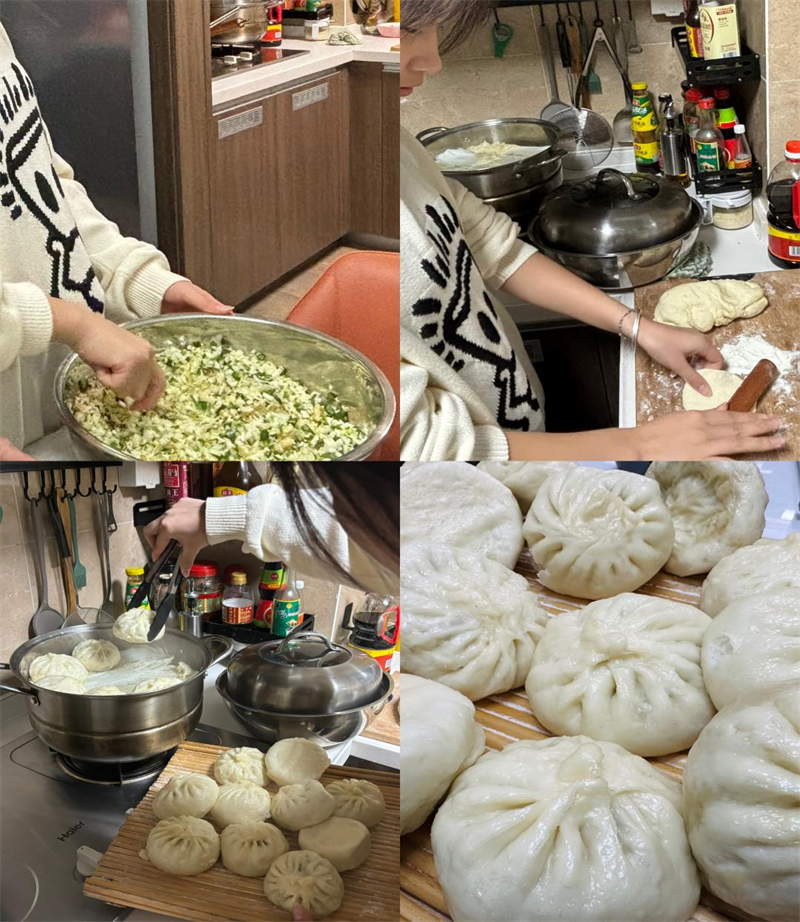 我爸妈都赞不绝口,他们说我做饭是专业的!我也希望我做的包子能给我们家带来团圆和幸福~