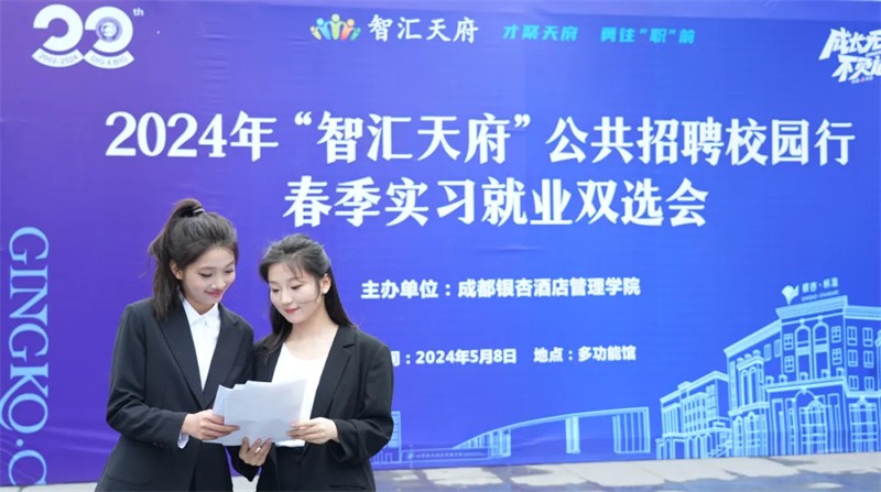 5月8日,我校举办2024年“智汇天府”公共招聘校园行春季实习就业双选会。此次双选会设置“酒店行业专区”“文旅行业专区”“物业行业专区”“就业专区”,百余家企业为2024届毕业生和2025届实习生带来岗位近600个。