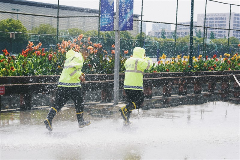 桌面推演环节,在演练总指挥的统一调度下,主要对汛情监测与情况通报、应急抢险及舆情应对进行了推演。实战演练环节,根据校区主要隐患点特性,重点演练了在新一轮强降雨即将来临前,对学校低洼地带进行防汛沙袋放置和积水/污水抽排等。接到防汛救灾预警指令后,各抢险救援人员携带相关器材,按照“一分钟形成抢险救援第一梯队、三分钟形成抢险救援第二梯队”的工作要求赶赴险情现场,采取“疏堵结合”方式开展应急抢险,整个过程全体参演人员配合高效,抢险救援有条不紊。