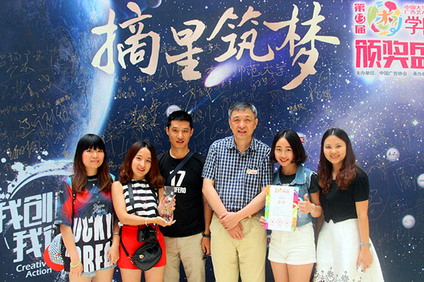 7月26日,成都信息工程大学银杏酒店管理学院艺术设计系党总支副书记李菲、实验室主任孙传宝携艺术系学子前往北京梅地亚中心参加“第十三届中国大学生广告艺术节学院奖”颁奖典礼!由艺术系12级视觉本科班同学李洪锦、洪妙丽、吴依恬同学携手设计的的参赛作品:《长长久久的味道》荣获本届学院奖“马大姐”食品网络微电影类别全国金奖!
