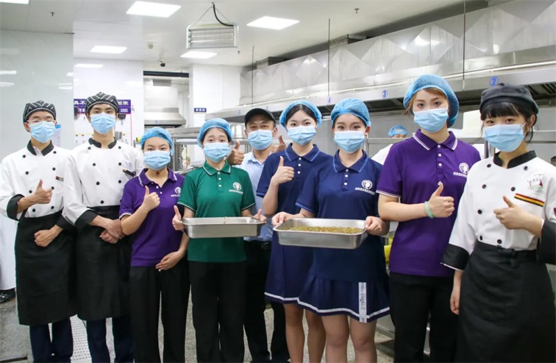 趁着新鲜劲儿,大家运用专业所学,在学校食堂老师们的帮助下加工烧椒酱。
