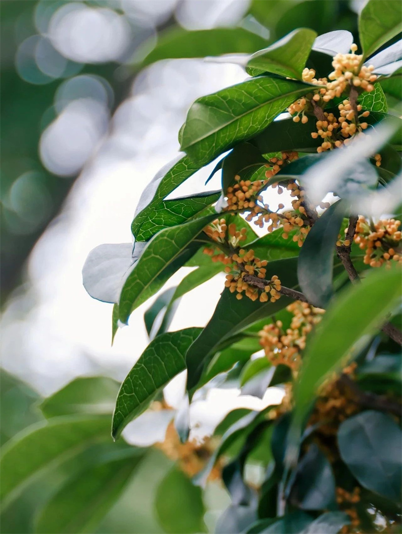 一树桂花开香满银杏校园酝酿许久的桂花虽迟,但终归还是来了金桂,银桂这抹黄色与绿叶作伴浑然是校...