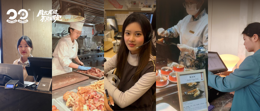 在经历了岗位的适应银杏学子在岗的工作表现已更上一层楼她们将在校所学的知识和技能淋漓尽致运用在酒店餐饮部后厨银杏学子烹饪美味佳肴为客人送上暖胃又暖心的味蕾体验在餐饮部厅面管理中银杏学子用标准微笑和专业服务让每位客人宾至如归他们走在从“校园人”到“酒店人”的转变之路上用行动诠释“潜力无限”专业能力和职业素养赢得实习企业的频频点赞01用心用勤铸造...