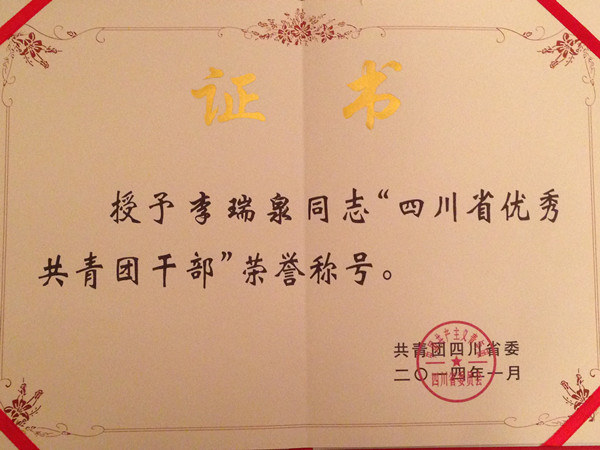 我院李瑞泉老师被授予“四川省优秀共青团干部”称号